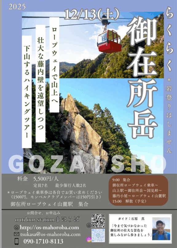 次回のスーパーポーターシンさんのツアーは12月13日(土)の「らくらく御在所」ツアーです。こちらもオモシロイ内容を準備しております。