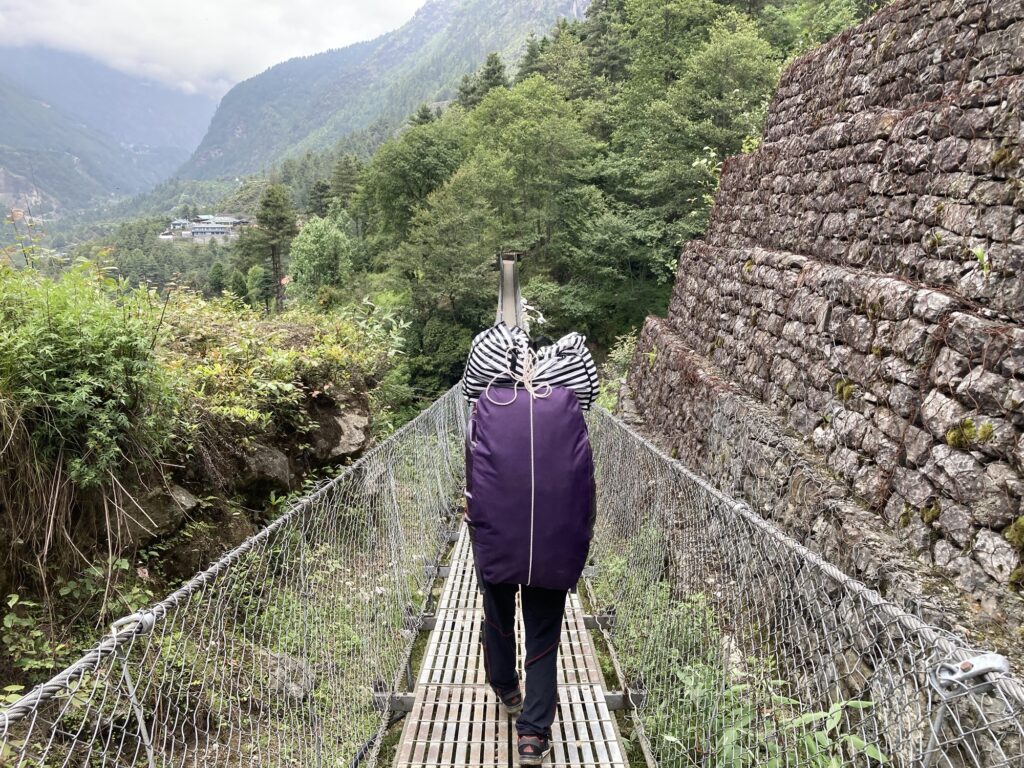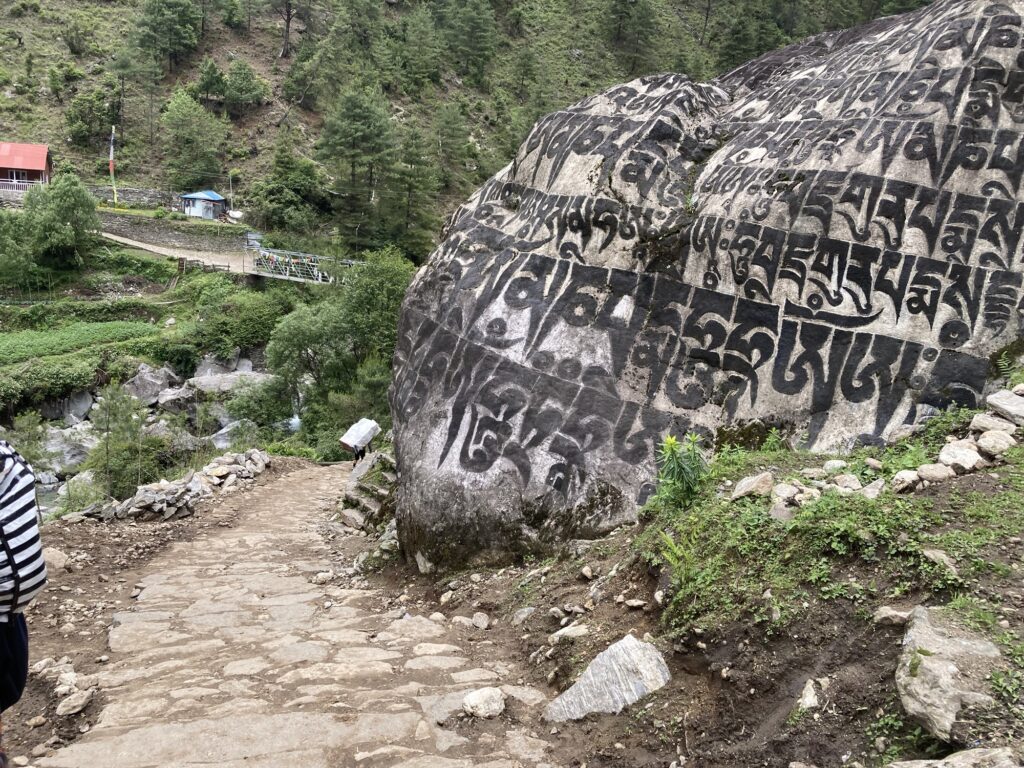 ルクラ(2840m)からスタートして、しばらくは下ります。再び登り返したモンジョ(2850m)が初日の宿です。モンジョからは晴れていればタムセルク(6608m)がよく見えます。