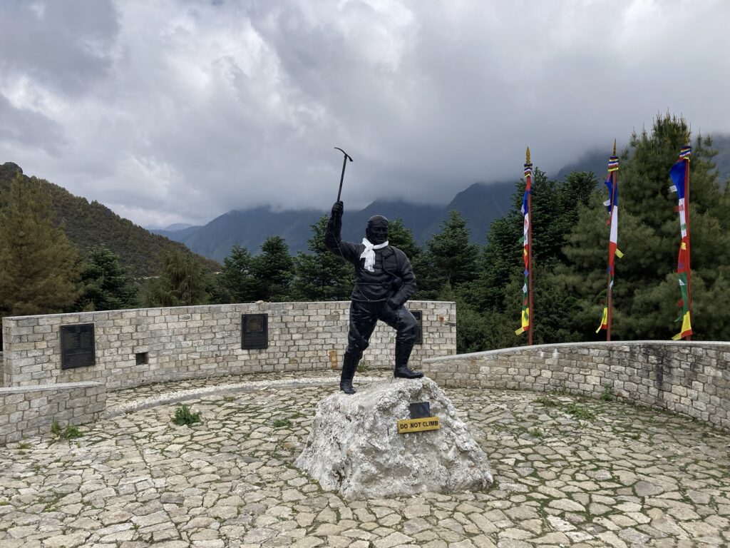 標高も上がり、高山病のリスクが高まる所まできていますが、体調は良いみたいです。ナムチェでは高所順応のため、2日間滞在予定です。宿に荷物を下ろしたら、少し先のアーミーキャンプまで歩きます。ここにはエベレストに初登頂したシェルパ、テンジンの像があります。また晴れていればエベレストを眺める事ができるビューポイントです。