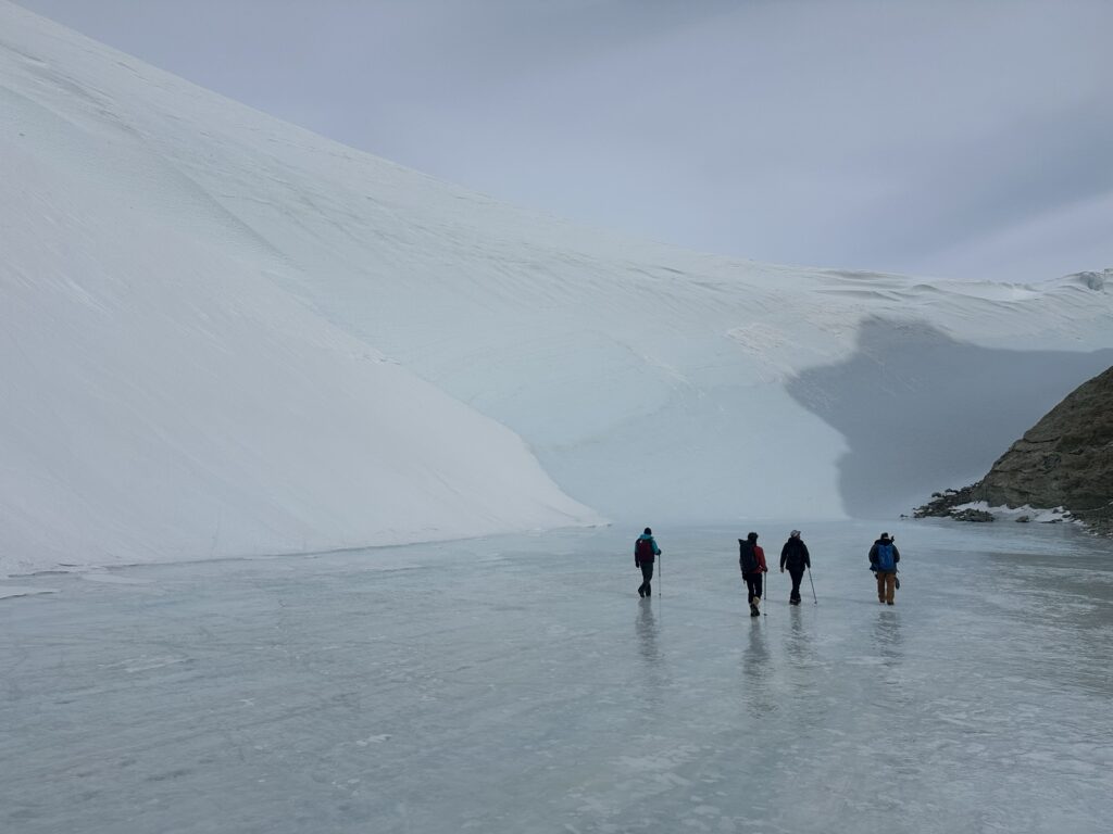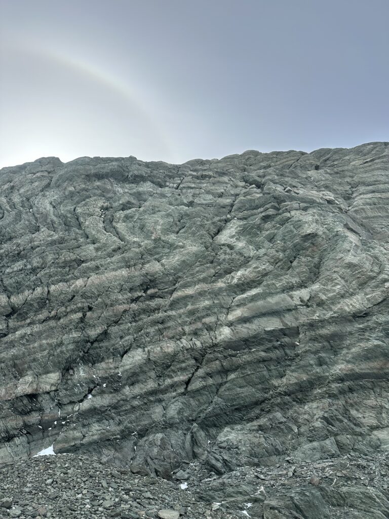 昼食の後はWindscoopと呼ばれる場所をミンマに案内してもらいトレッキングに出かけました。強い風により削られた氷の大地、見える岩肌も不思議な形に歪んでいました。