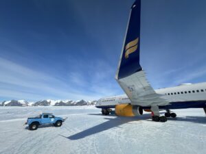 約1時間のフライトを経て、ビンソン・マシフBCに着陸しました。標高はおよそ2,200m、気温は−18℃です。周囲を山に囲まれている為か、風は意外なほど弱く、静かな環境でした。
