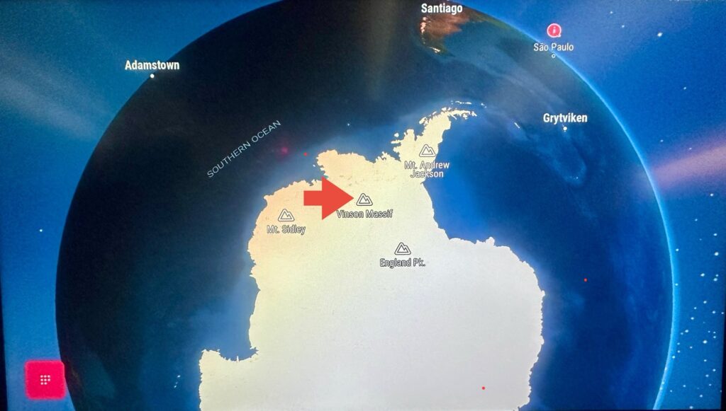 やがて飛行機が高度を下げ始めると、目の前にひときわ大きな山が姿を現しました。その圧倒的な存在感から、あれがビンソン・マシフだとすぐに分かりました。