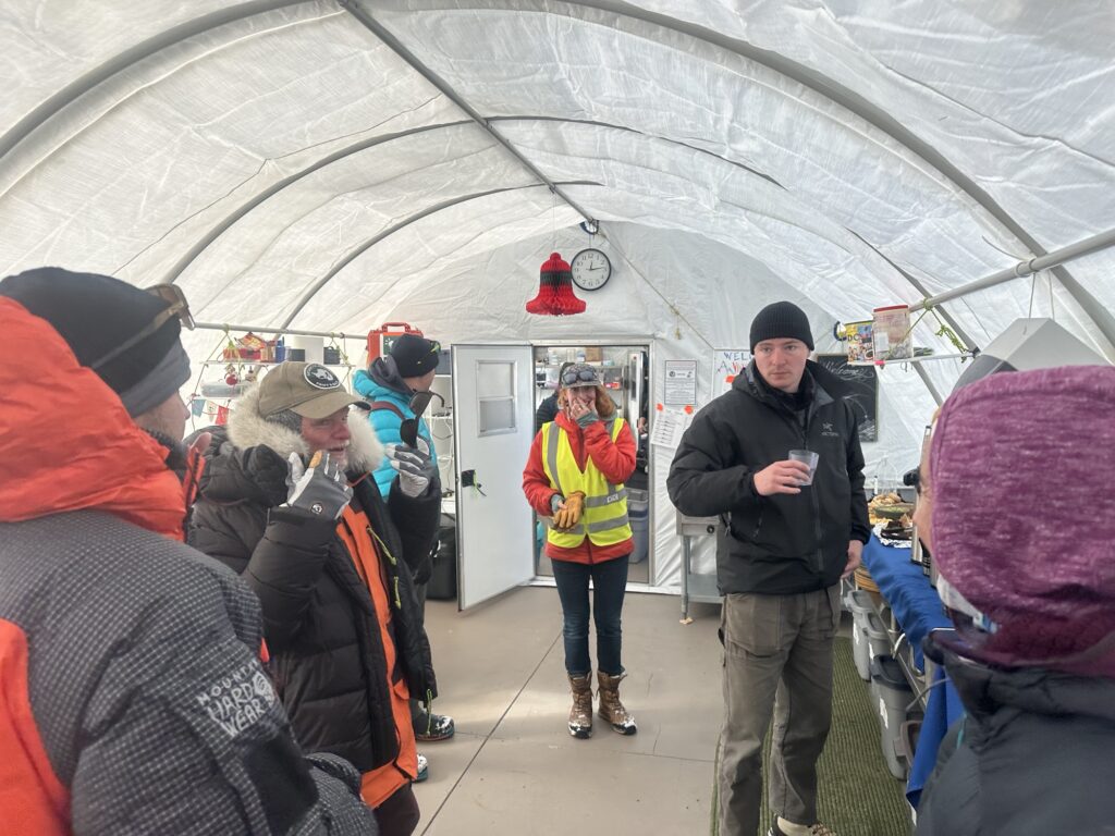 ユニオン・グレイシャー基地の3分の1ほどの大きさの食堂テントがあり、暖房や充電設備が完備されています。さらにWi-Fiまで使えることには驚きました。