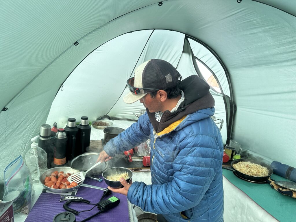 キッチンテントも残置されているものをガイドが設営(ヒルバーグ製)し、ローキャンプではガイドのJBとミンマが食事を作ってくれました。