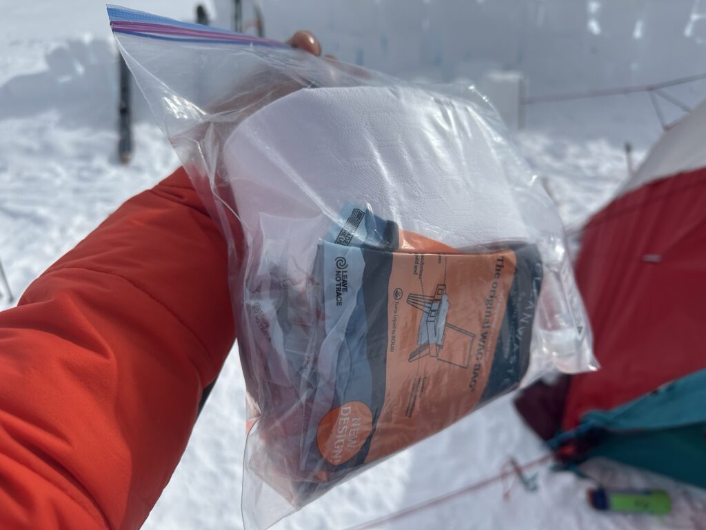 ローキャンプ以上では、トイレを含め、すべてのゴミを持ち帰らなければなりません。そのためトイレの使用方法についての説明を受けました。