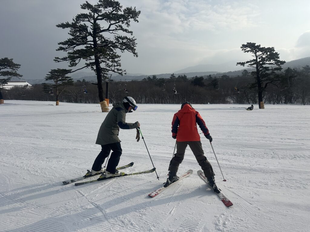 シタムラキャンプ場のオーナー・シタムラさんは、元スキー選手でコーチ経験もあるスペシャリストです。今回、数十年ぶりにスキーをされる参加者の方もいらっしゃいましたが、シタムラさんの丁寧なコーチのおかげで、すぐに上達し気持ちよく滑れるようになっていました。