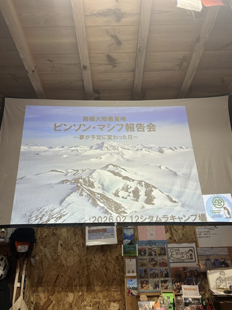 食後には、南極ビンソンマシフ登山の報告会を開催し、皆さまに体験を共有させていただきました。