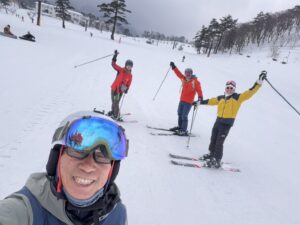 シタムラキャンプ場のオーナー・シタムラさんは、元スキー選手でコーチ経験もあるスペシャリストです。今回、数十年ぶりにスキーをされる参加者の方もいらっしゃいましたが、シタムラさんの丁寧なコーチのおかげで、すぐに上達し気持ちよく滑れるようになっていました。