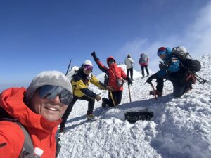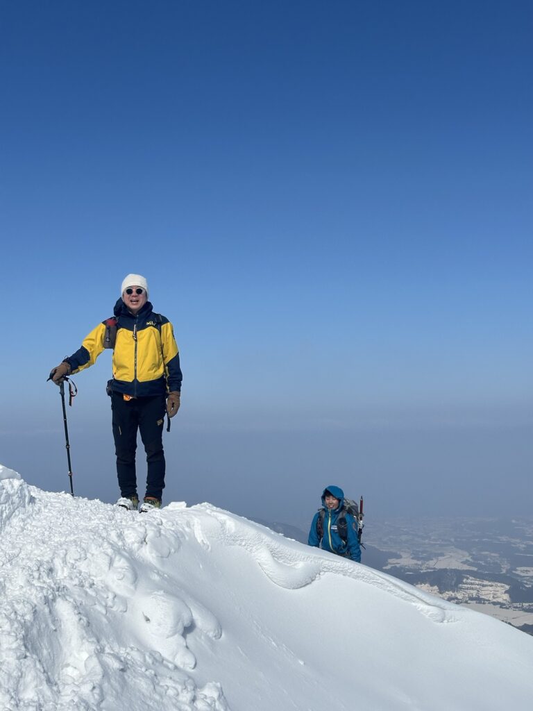 登山開始から約3時間で無事に登頂。この時期の大山では貴重な、スカッと晴れた空が広がり、山頂からの素晴らしい眺望を存分に楽しむことができました。