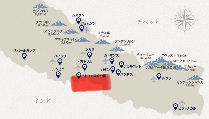 標高約1300mのカトマンズから、目的地のチトワンは標高およそ100m。