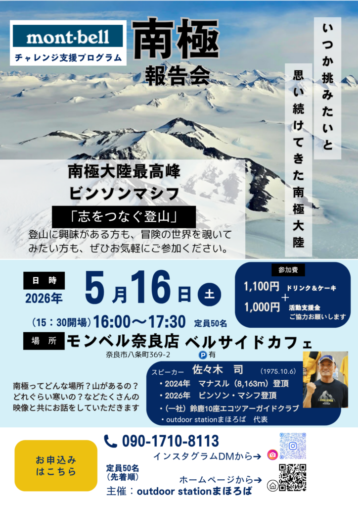 南極遠征の報告会や講演は、学校・地域イベント・アウトドア関連イベントなどでもお話しさせていただきます。