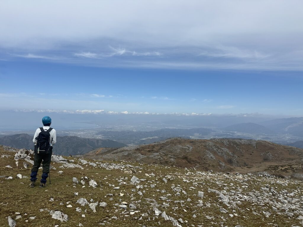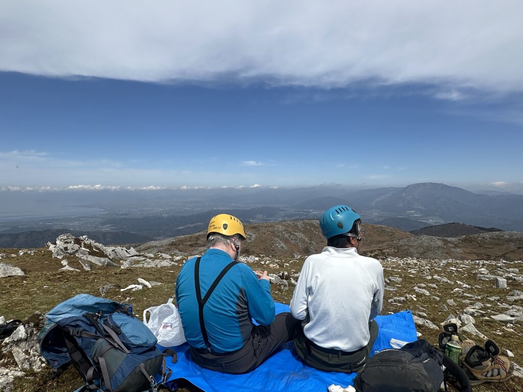 そして山頂からは、びわ湖をはじめ、伊吹山、御池岳、そして昨年登られた藤原岳の姿も。これまで歩いてこられた山々を眺めながらの昼食となりました。
