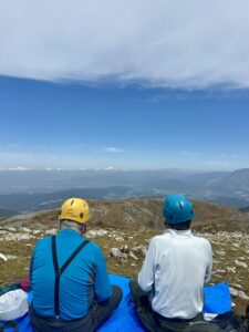 そして山頂からは、びわ湖をはじめ、伊吹山、御池岳、そして昨年登られた藤原岳の姿も。これまで歩いてこられた山々を眺めながらの昼食となりました。