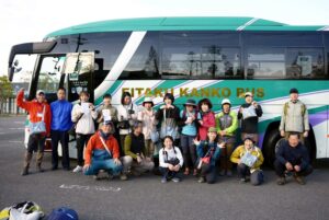 当日は気持ちのよい快晴。総勢18名でのにぎやかなスタートとなりました。朝7時に東近江市に集合し、貸切でお願いしたエイタクさんの中型バスに乗り込み、いざ出発です。