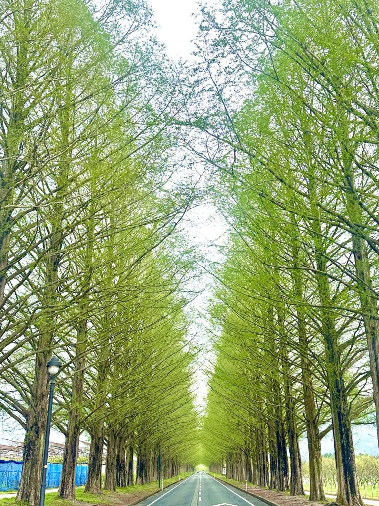ちょうど新緑が美しい季節で、鮮やかなグリーンのトンネルが広がっていました。春の柔らかい光と相まって、思わず足を止めてしまうような心地よい景色です。