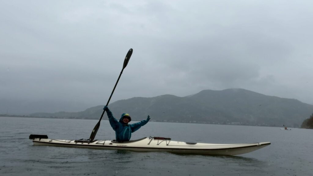 静かな水面を進むカヤックは、とても心地よく、晴れの日とはまた違った特別な時間となりました。